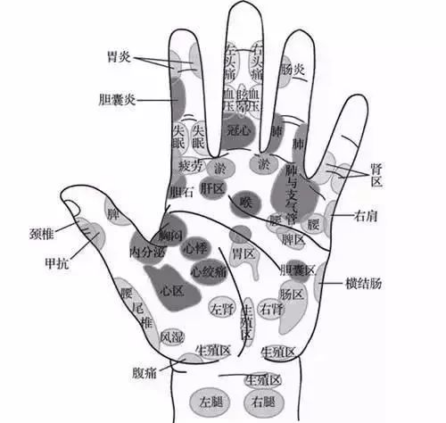 The acupoint area where the palm root is located represents the genitourinary system, including the kidneys, ureters, ovaries, uterus, prostate, etc.