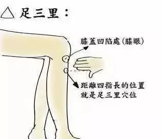 Zusanli acupoint: It is one of the main acupuncture points of Zuyangming stomach meridian, located on the outside of the calf, 3 inches below the calf's nose.