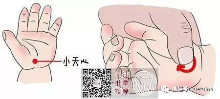 (2) Pinching and pounding the small heavenly heart can calm the nerves. It is mainly used for convulsions, night crying, convulsions and other symptoms. Eye rolling, strabismus, can be combined with pinching the old dragon, pinching the human middle, clearing the liver meridian, etc. Those who turn their eyes upwards pinch and pound downward; Those with right strabismus pinch and pound to the left; Those with left-squinted vision pinch and pound to the right.
