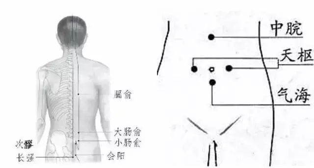 The small intestine is located between the beginning of the bone spinous muscle and the beginning of the gluteus maximus, the sea of qi is located an inch and a half below our navel, and the Tianshu is at the position of the left and right fingers of our navel.